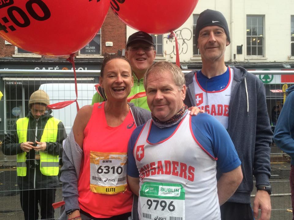 We were there early enough and lined up at the front of wave 2 with the 4hr pace group. I knew them all well with Olwyn and Joe from Crusaders and Niall from a while back. My plan was to hang onto the 4 hr pacers till after the park and then struggle to a 4:30. Given the week that would be a great effort.